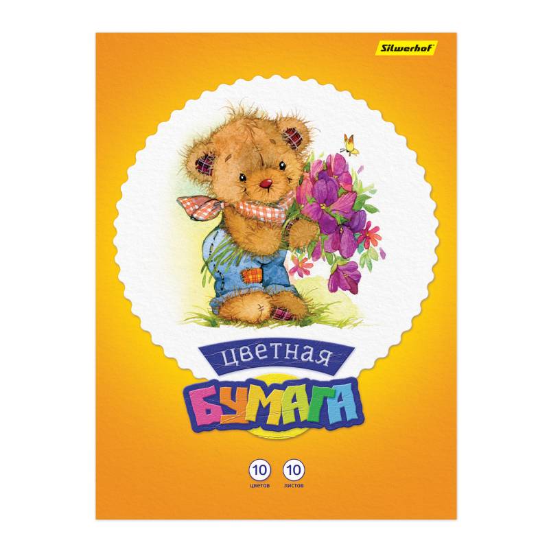 Бумага цветная Silwerhof 917153-24 одност. 10цв./10л. A4 Мишки 50г/м2 2диз. обл.мел.бумага скрепка