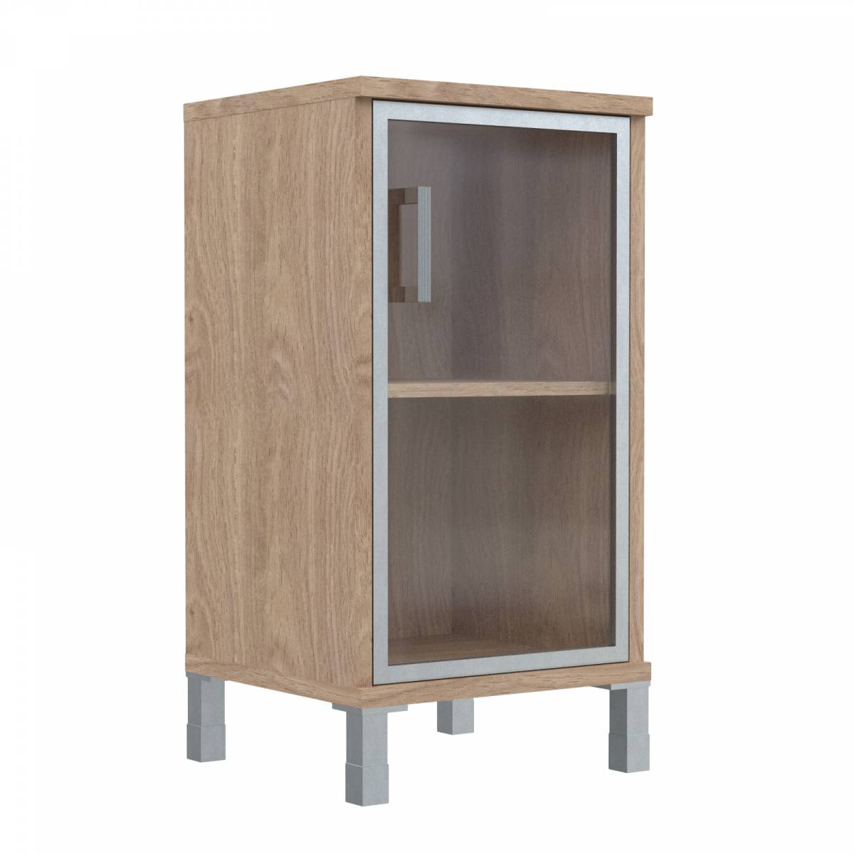 Шкаф-колонка низкая со стеклянной дверью в AL-рамке B 411.4(R) Дуб Девон 475х450х920
