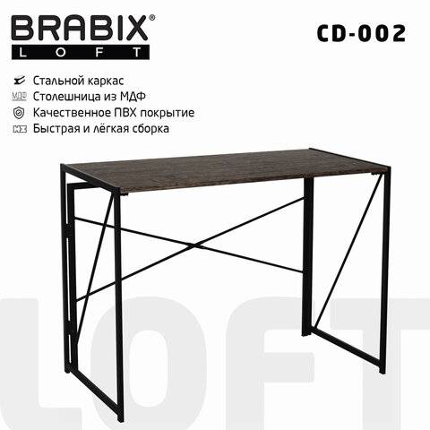 Стол на металлокаркасе BRABIX LOFT CD-002, 1000х500х750 мм, складной, цвет морёный дуб, 641212
